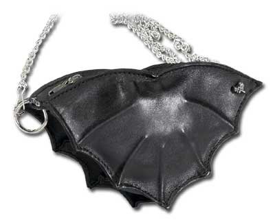 Bat Purse -Sculpted leather bat-shaped purse, with zip-top & curb chain strap. Approx. dimensions: 19cm (7") wide X 10cm (4") high X 4cm (1") deep. Bat Purse Do not Miss!! Bat Purse -Sculpted leather bat-shaped purse, with zip-top & curb chain strap. Approx. dimensions: 19cm (7") wide X 10cm (4") high X 4cm (1") deep. ... Bat Purse
